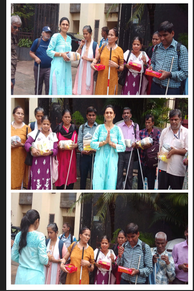 Sairaj Charitable Trust organized a special distribution drive for visually impaired children, sharing essentials with care and compassion.